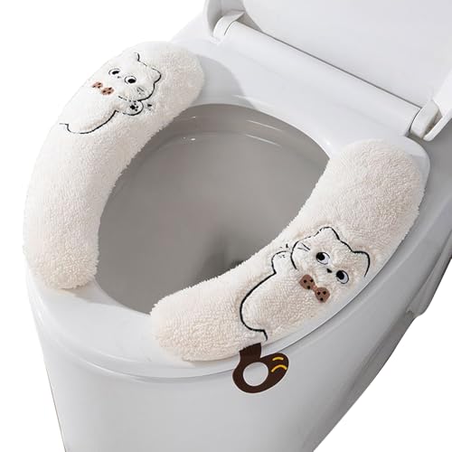xyensy Toilet Seat Covers, 1 Pair Reusable Warm Seat Covers, Bathroom Toilet Seat Winter Plush Cover - For Winter & Cold Home Travel Student Dorm Office Apartment