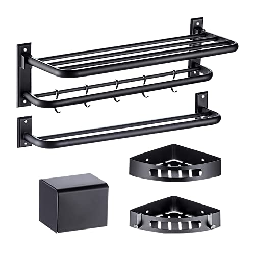 FBSHAD Gunmetal Bathroom Towel Rack Set Wall Mounted Toilet Paper Holder Robe Hook and Hardware Accessories Stylish Black Finish 4 Pieces