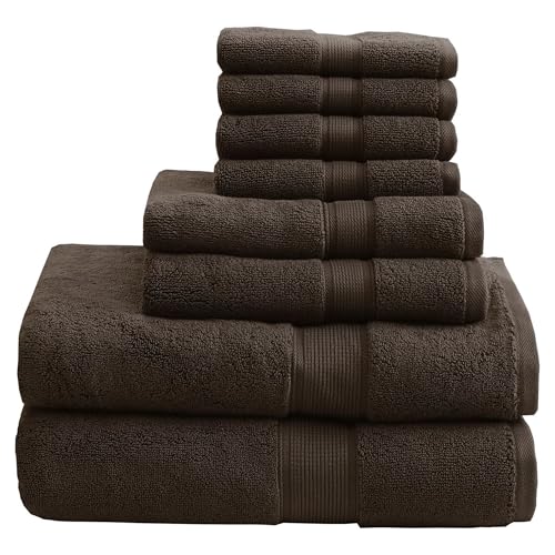 Madison Park 800GSM Bathroom Towel Set of 8 100% Cotton Bath Towel Set for Bathroom Luxurious Highly Absorbent 2 Bath Towels 2 Hand Towels 4 Washcloths Quick Dry Spa Quality Brown