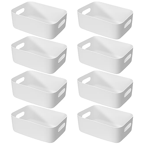 ZPONEED 8pcs Plastic Storage Boxes, White Storage Baskets with Handles, 30x20x12cm Storage Box for Kitchen, Cupboard, Office, Bathroom, Toy, Durable Home Tidy Open Storage Bins