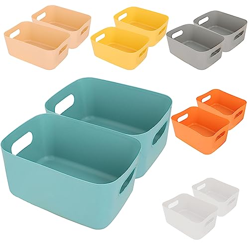 ASelected 6Pcs Plastic Storage Boxes, Multiple Colors Storage Baskets, 24x16x9cm Storage Boxes for Kitchen, Cupboard, Office, Bathroom, Toy, Durable Home Tidy Open Storage Bins with Handles