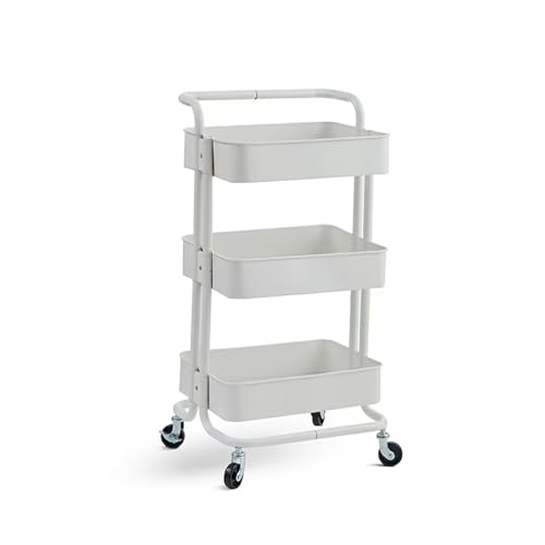 LLSHQ 3 Color Roller Storage Metal Bathroom Kitchen Storage Trolley Rolling Storage Cart 3 Tier Serving Trolley Wine Cart Tea Cart,Off-White,463578Cm