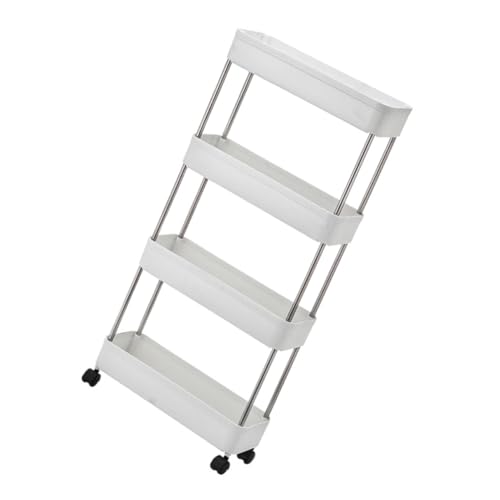 10cm Wide Kitchen Storage,Slim Slide Out Kitchen Bathroom Trolley Rack Holder Storage Shelf Organiser on Wheels,Plastic & Stainless Steel,White (Size : 4 layers) uesful