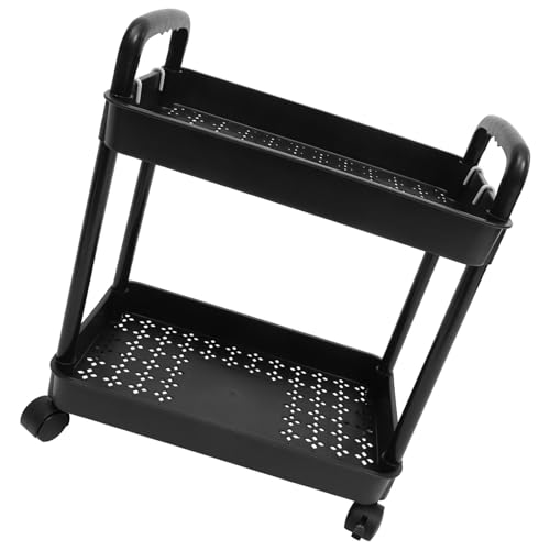 Zerodeko Mobile Double Tier Rolling Utility Cart with Wheels Versatile Bathroom Organizer Trolley for Kitchen and Office Sturdy Multi-tier Storage Rack with Capacity for Space-saving