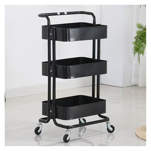 WENFEN Storage Trolley,Utility Cart Rolling Cart Kitchen Storage Cart 3 Tier Kitchen Storage Cart With Wheels Trolley Bathroom Storage Organization Cart(Black)