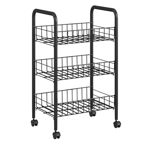 NTEK 3 Tier Metal Storage Trolley on Wheels – Rolling Utility Cart, Multi-Purpose Kitchen Trolley, Bathroom Organizer, Vegetable Rack, Makeup & Office Storage