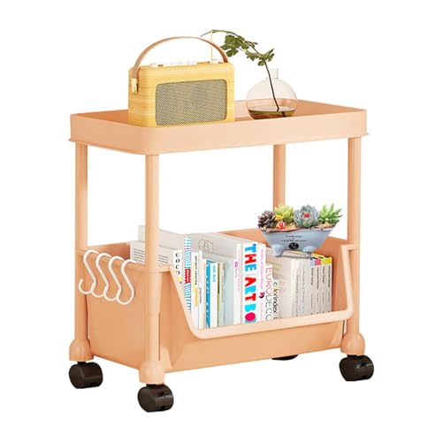 Mobile Shelf - 2 Tier Rolling Storage Trolley | Bathroom Cosmetic Trolley | Mobile Book Trolley Organizer | Mobile Storage Bookcase with Wheels | Shelf for s