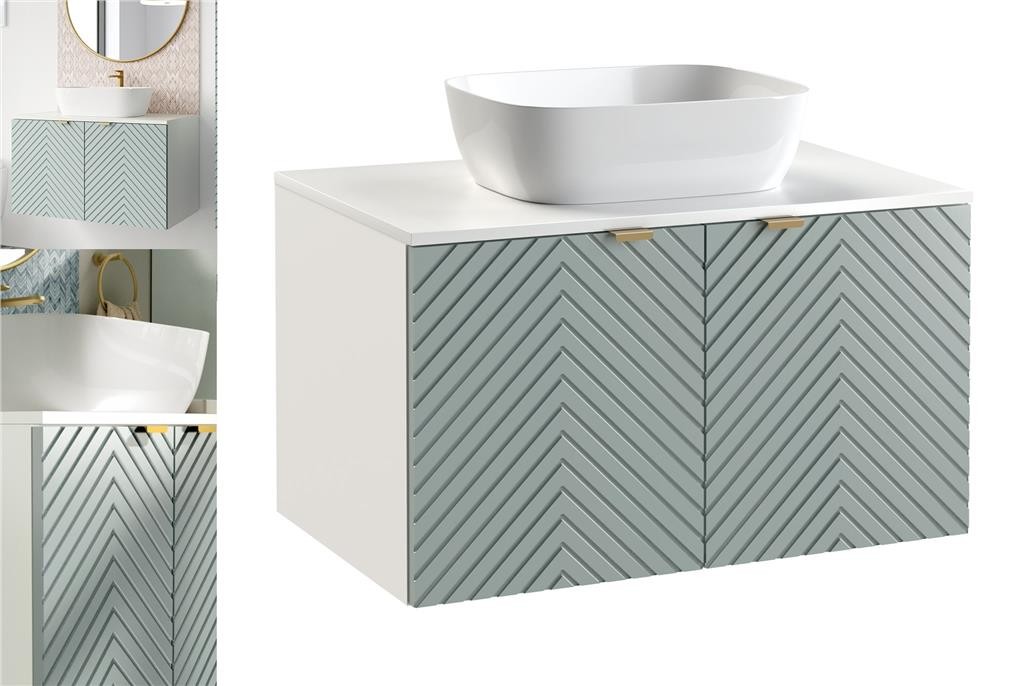 Countertop Vanity Unit 80cm Ribbed Green Bathroom White Worktop Sit On Sink Cara