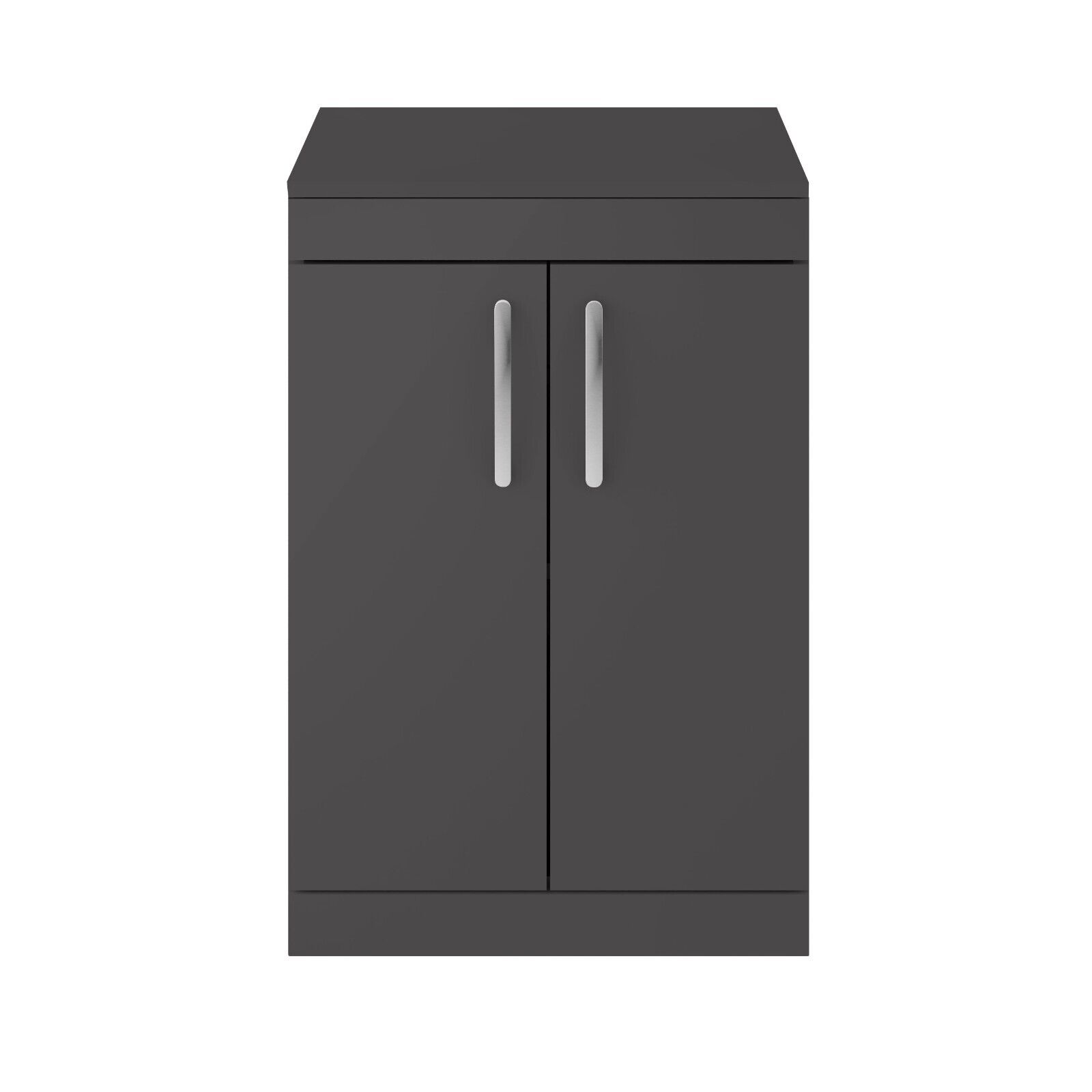 Nuie Athena Gloss Grey 600mm Floorstanding 2-Door Vanity Unit & Worktop Bathroom