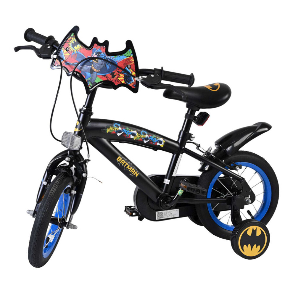 Batman 12" Inch Bike with Revver | Boys and Girls Officially Licensed Kids Bicycle with Realistic Sounds | Removable Stabilisers & Adjustable Handlebars & Seat Childrens, Black