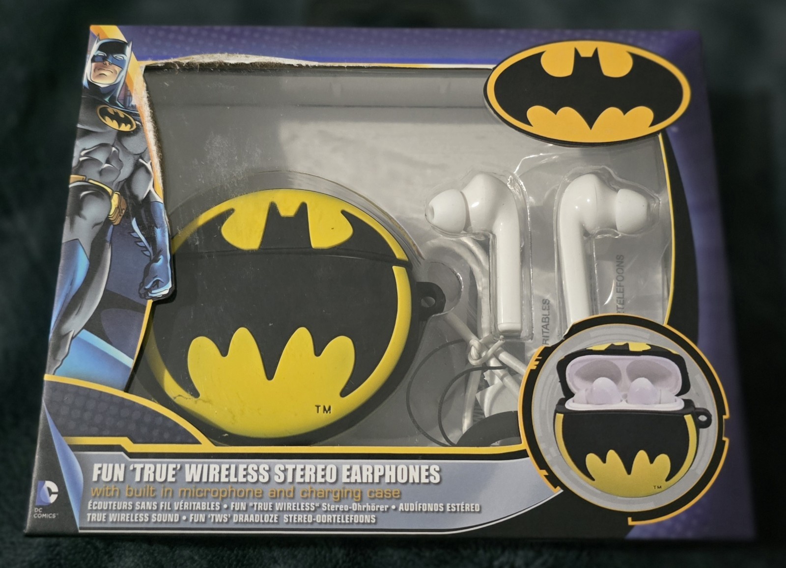 Batman True Wireless Earbuds Headphones w/ Charging Case - DC Comics - New