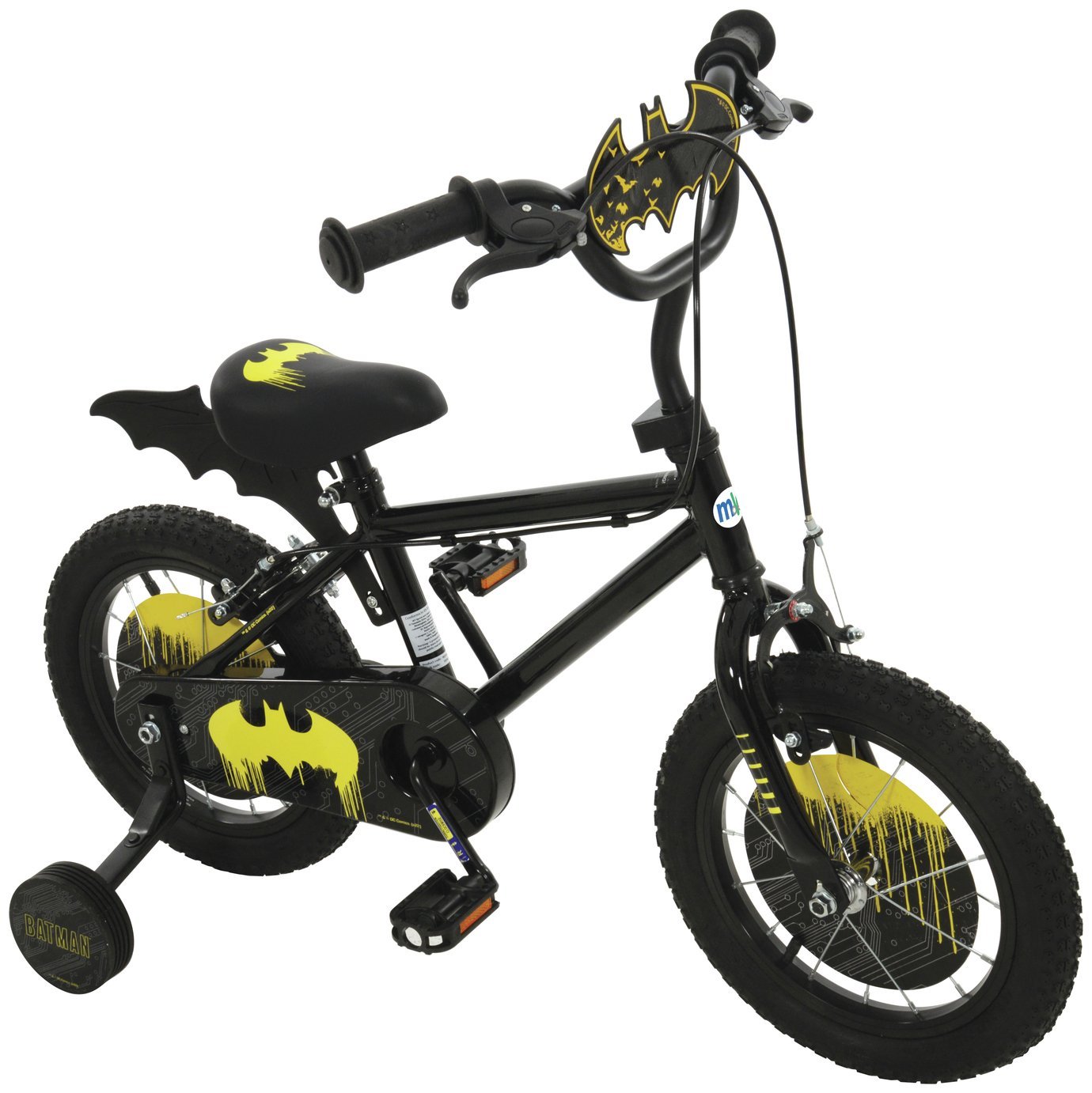 Dino Batman Kids 16in Bike Bicycle With Stabilisers Black Yellow Cycling
