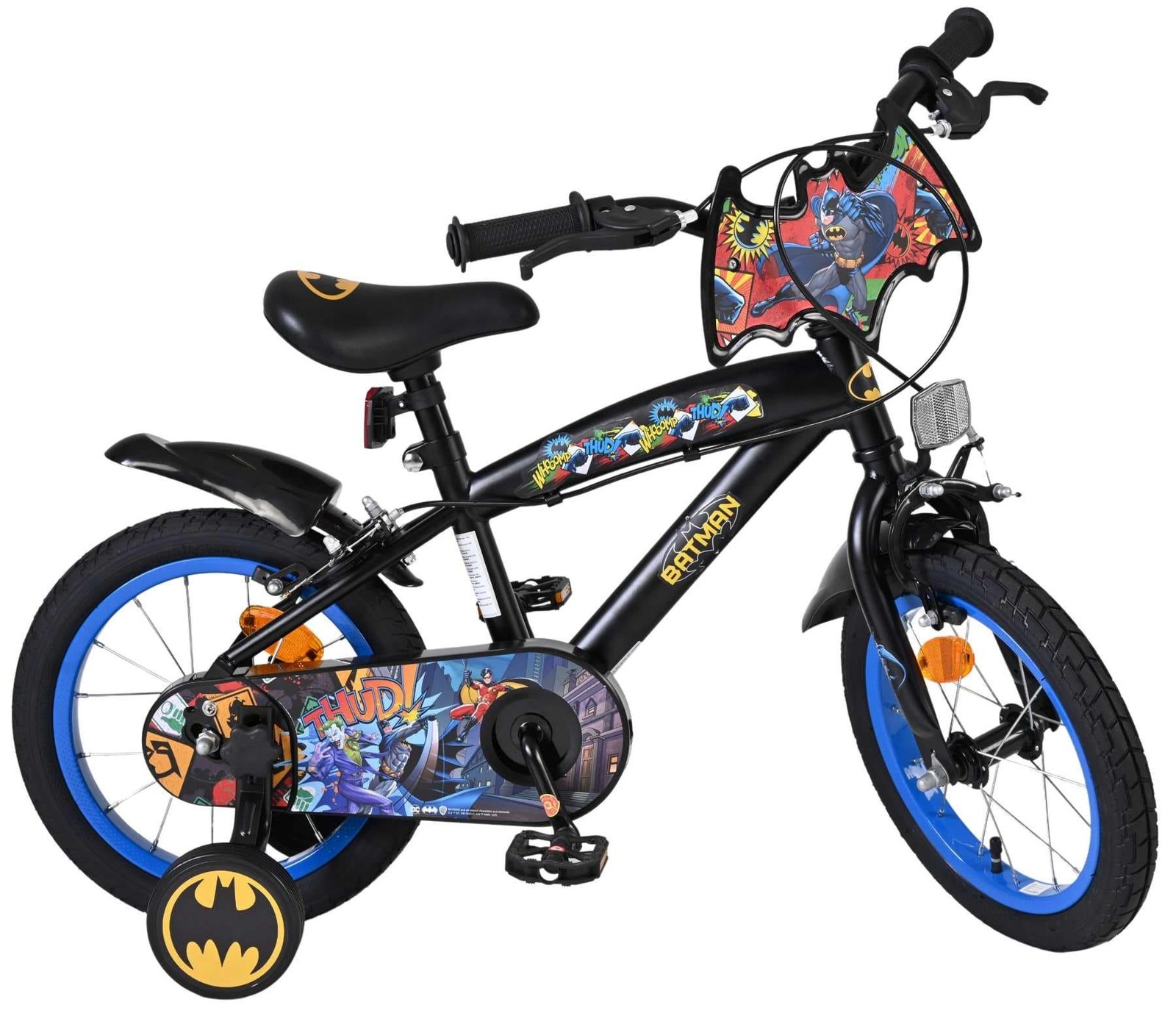 Volare Batman Kids Bike | Ages 3.5-5 | 14 Inch Wheel | 2 Handbrakes (Front & Back Wheel), Removable Stabilisers, Chain Guard & Pedal Reflectors | Adjustable Saddle | Gift for Girls & Boys