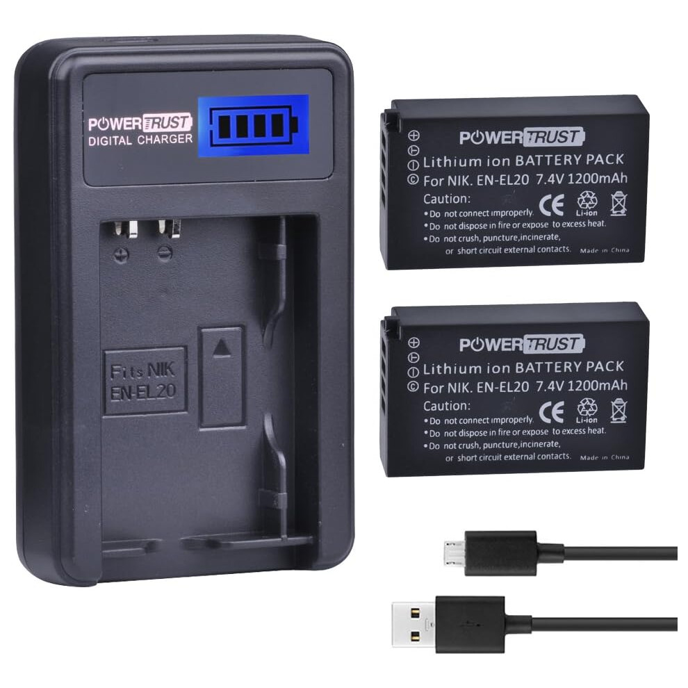 2 Pack EN-EL20 EN-EL20a Camera Battery and LCD USB Charger for Nikon 1 J1 J2 J3 S1 AW1 Camera Batteries
