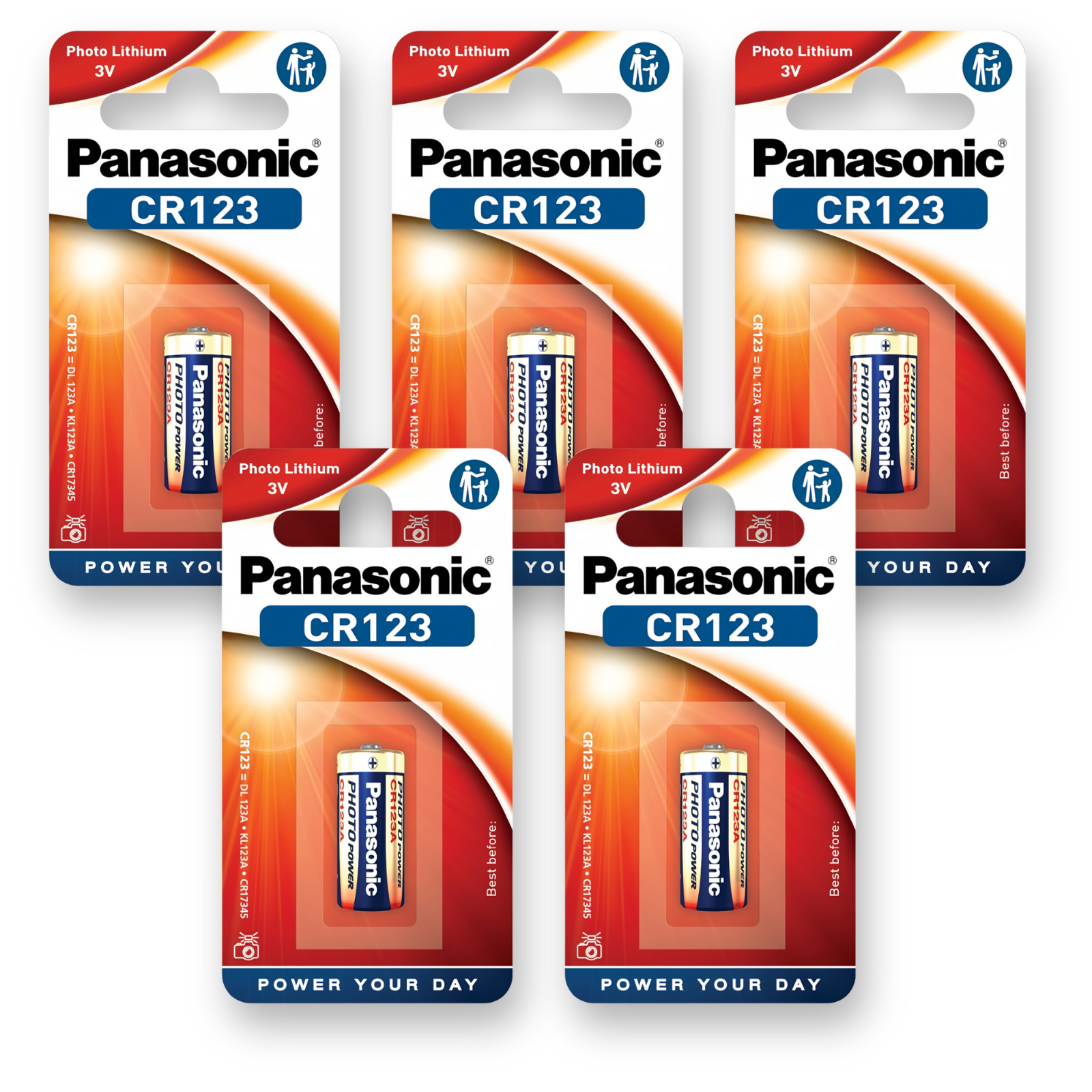 5x PANASONIC 123 Batteries CR123A DL123 3V Lithium Photo Camera Longest Lasting