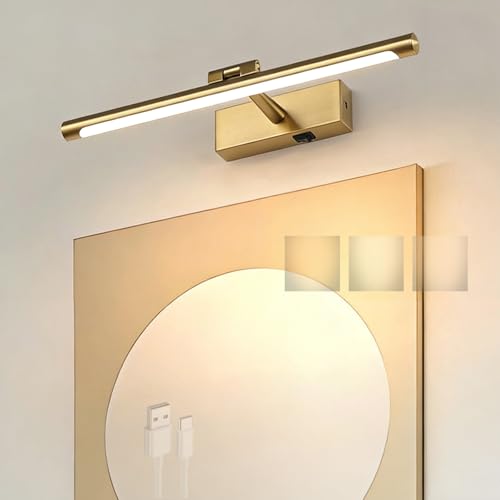 LED Bathroom Wall Light Above Mirror Waterproof Wall Lamp with Switch Wall Sconce USB Rechargeable Wall Lighting Battery Operated for Bedroom Hallway Office