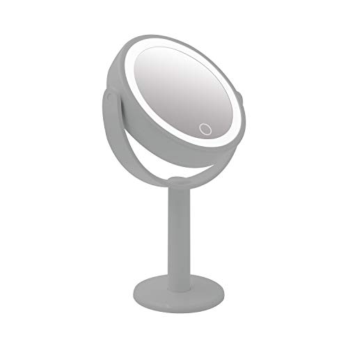 Anika 67039 LED Vanity Mirror | Bathroom/Makeup/Bedroom Mirror | 360° Swivel Rotation | 5 x Magnification | Grey Colour | Battery Operated | 31cm x 18.5cm x 10.5cm