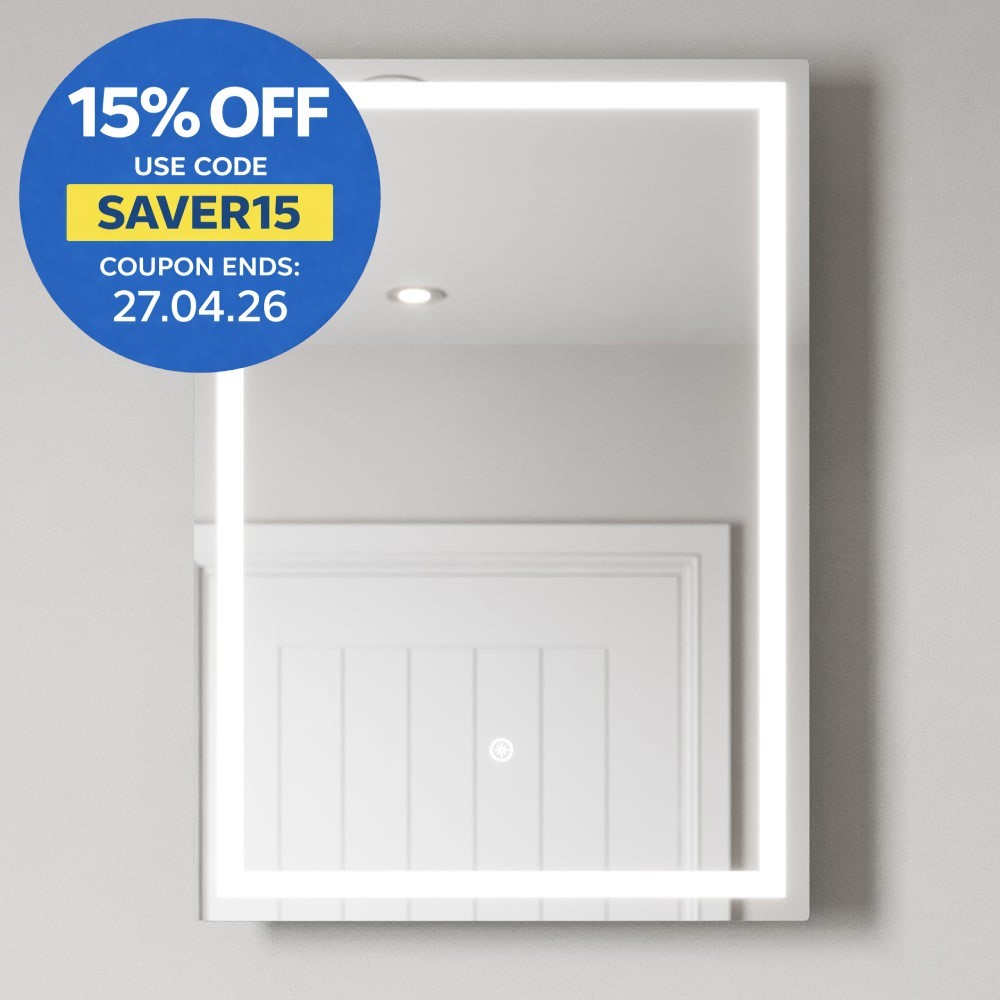 iBathUK Aurora LED Bathroom Mirror Battery Operated Rectangular Light Up Mirror with Bright LED Illumination Modern Frameless Copper Free Silver Wall Mounted Design for Bathrooms IP44 500x700mm