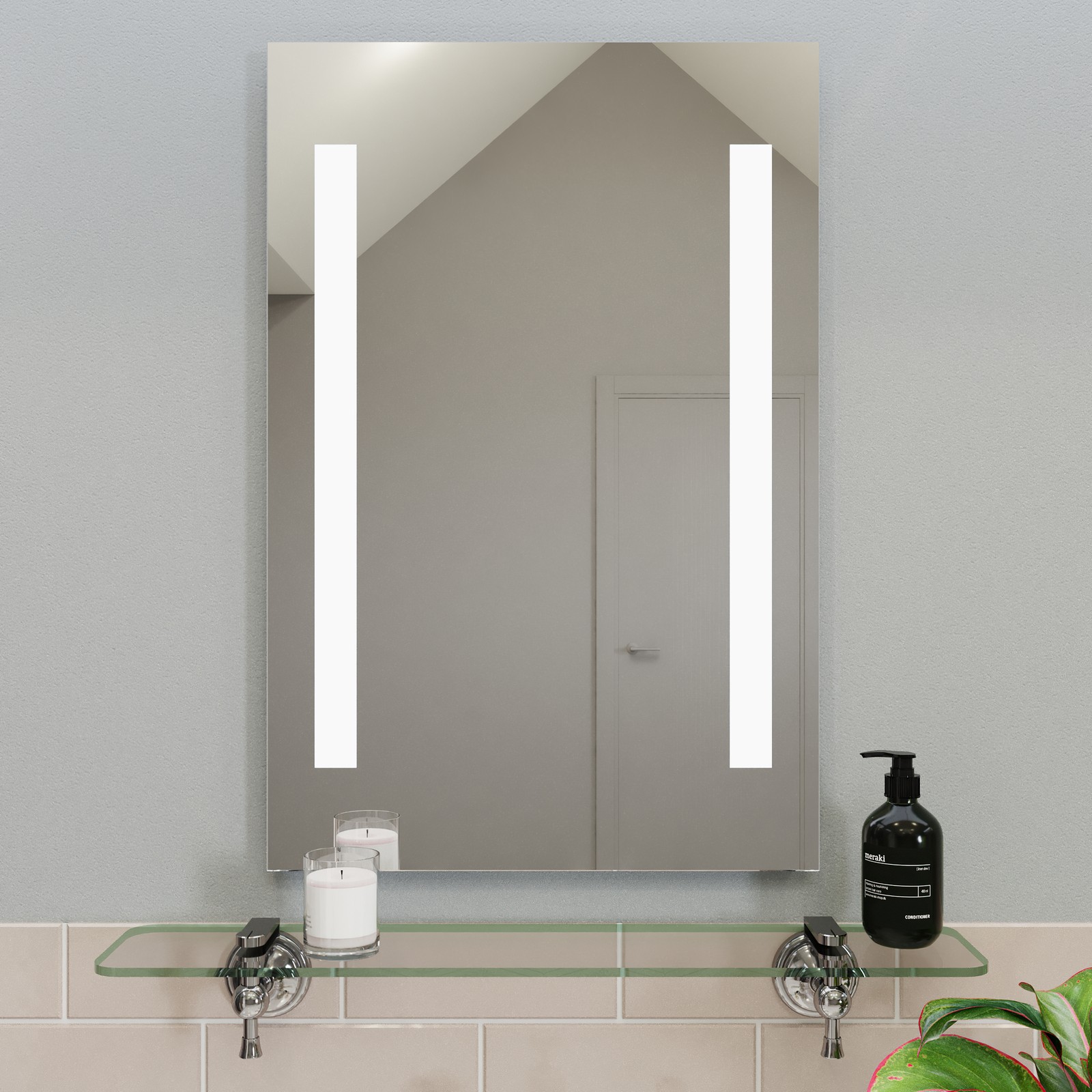 Croydex Thornton Bathroom Mirror with Lights - Easy to Install Bathroom LED mirror Battery Operated with All Fittings Included, Two Light Strips, Touch Button Power Switch, 60x40cm