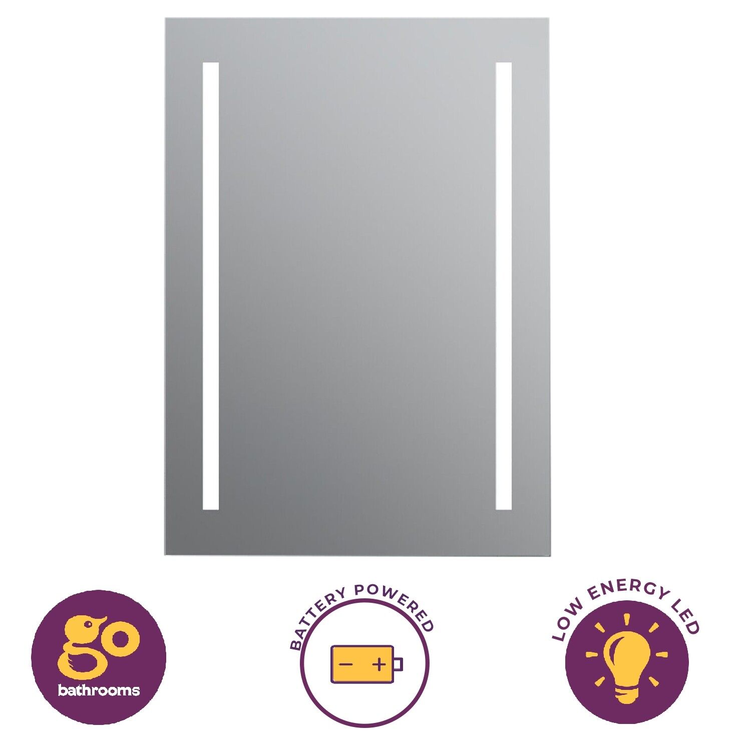 iBathUK Aurora Wall Mounted LED Bathroom Mirror, Modern Battery Powered Illuminated Mirror with Dual 6500K Cool White Light Strips with Portrait or Landscape Mount in Aluminium Frame, 500 x 700mm