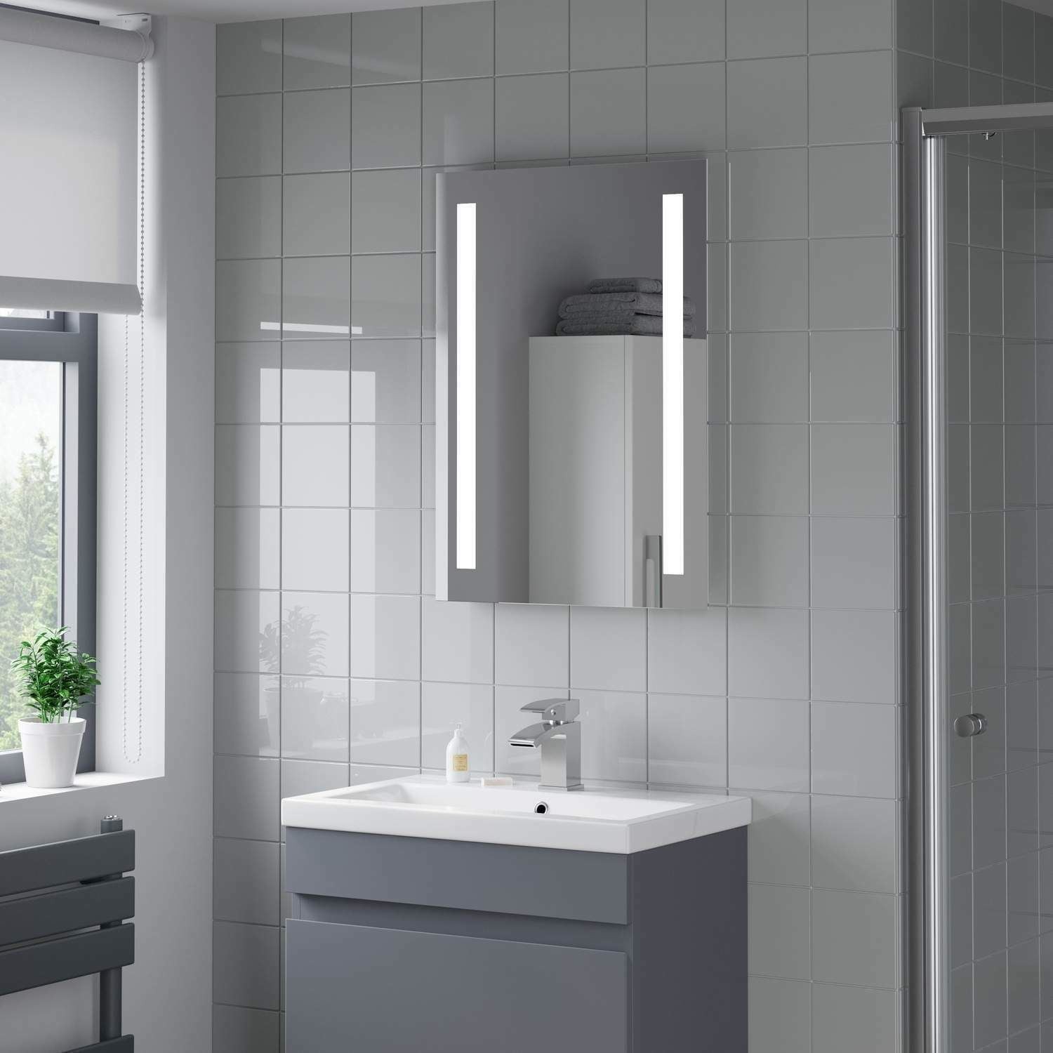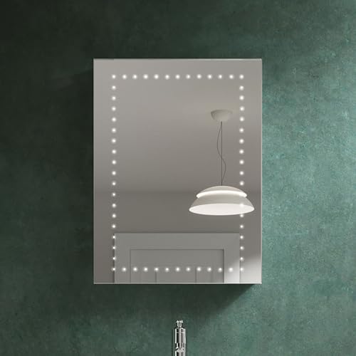 Illuminated Bathroom Mirror Cabinet with Rocker Switch 650x600mm IP44 Rated - Rowan Battery Operated Bathroom Mirror with LED Lights, Medicine Cabinets with Mirrors, Lighted Medicine Cabinets