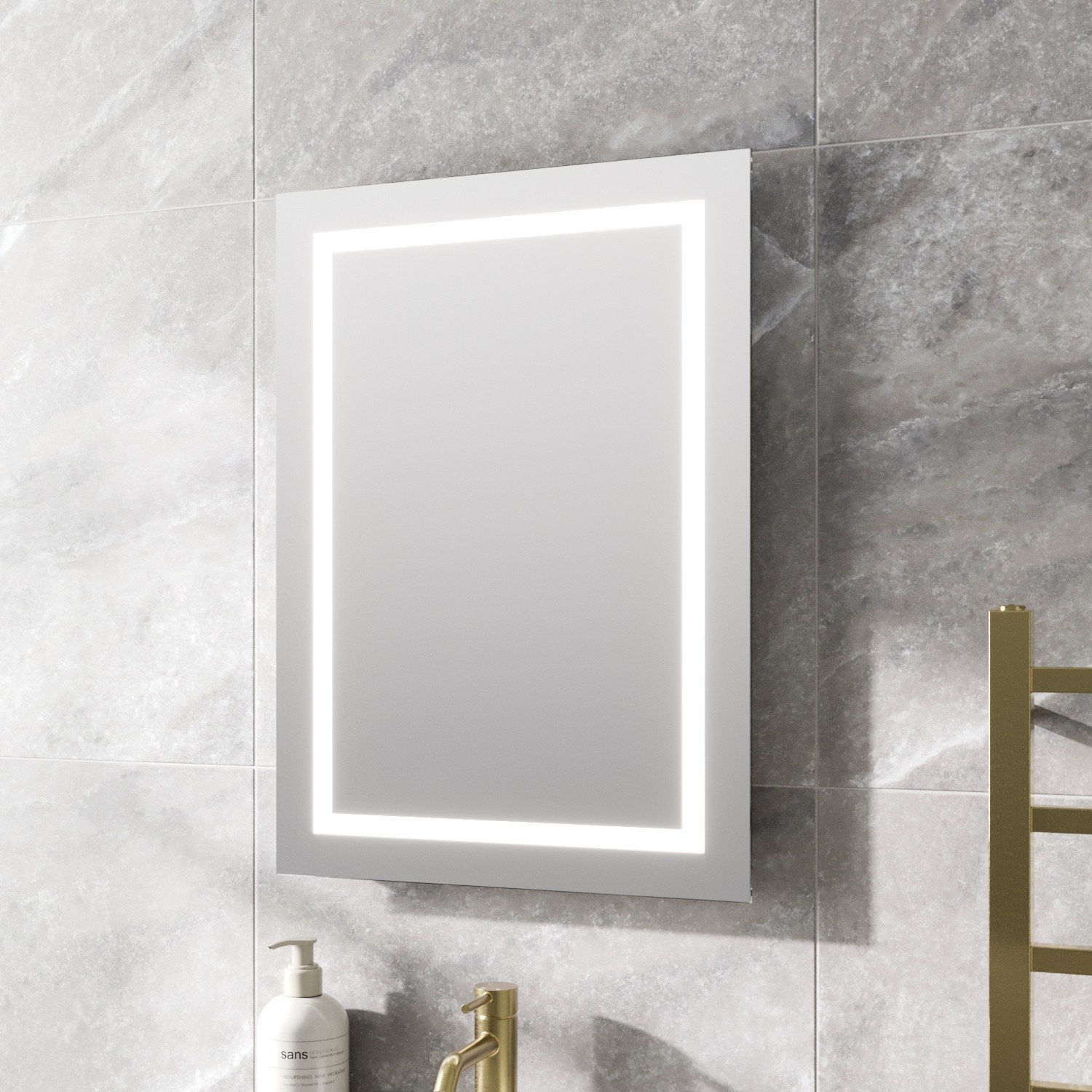 LED Bathroom Mirror Vertical Horizontal Illuminated Rectangular Battery 390x500