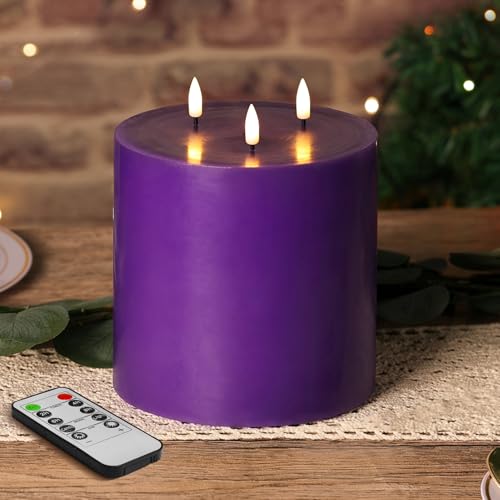 Eywamage Purple 3 Wick Flameless LED Pillar Candle with Remote, Large Battery Operated Wax Candle Φ 6" H 6"
