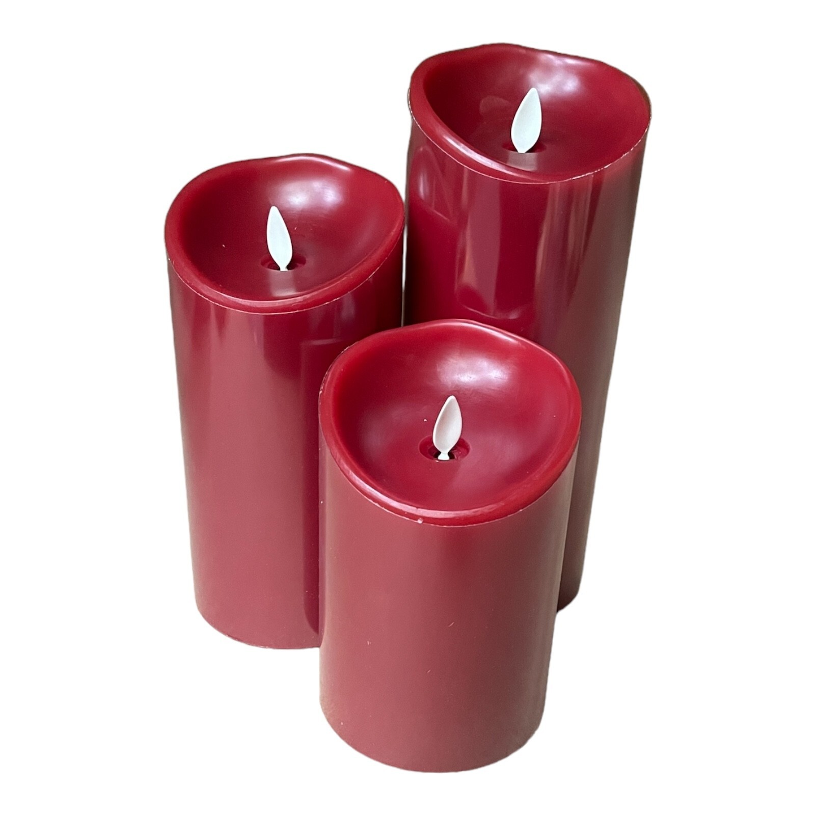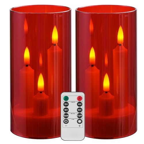 Da by Flameless Candle, Battery-Powered Candle with Remote Control and Timer, LED Three-Wick Pillar Candle, Romantic Wedding, Perfect Home Décor, 2 Pack (Red)