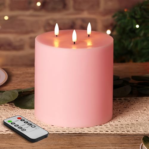 Eywamage Pink 3 Wick Flameless LED Pillar Candle with Remote, Large Battery Operated Wax Candle Φ 6" H 6"