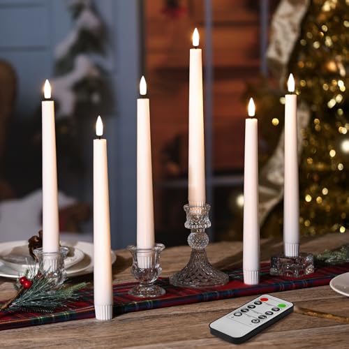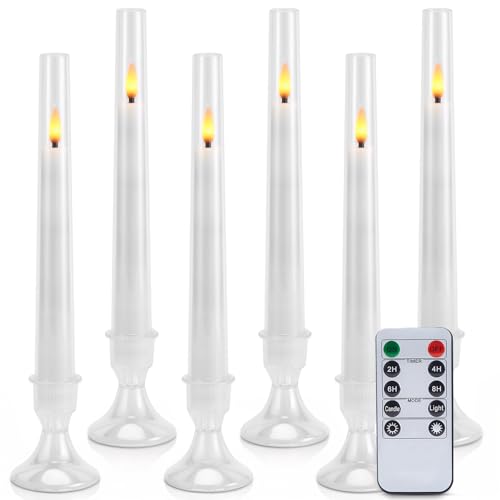 Eywamage White Flameless Taper Candles with Remote, Flickering Battery LED Wax Candle Sticks Set of 6