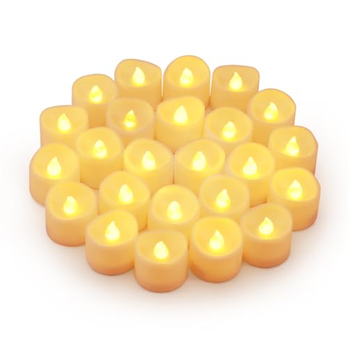 24 PCS LED Flameless Flickering Tea Lights Votive Candle Battery Operated/Electric Flicker LED Tealight Bulk Fake Candles for Halloween Christmas Wedding Party Decorations etc.(Warm White)