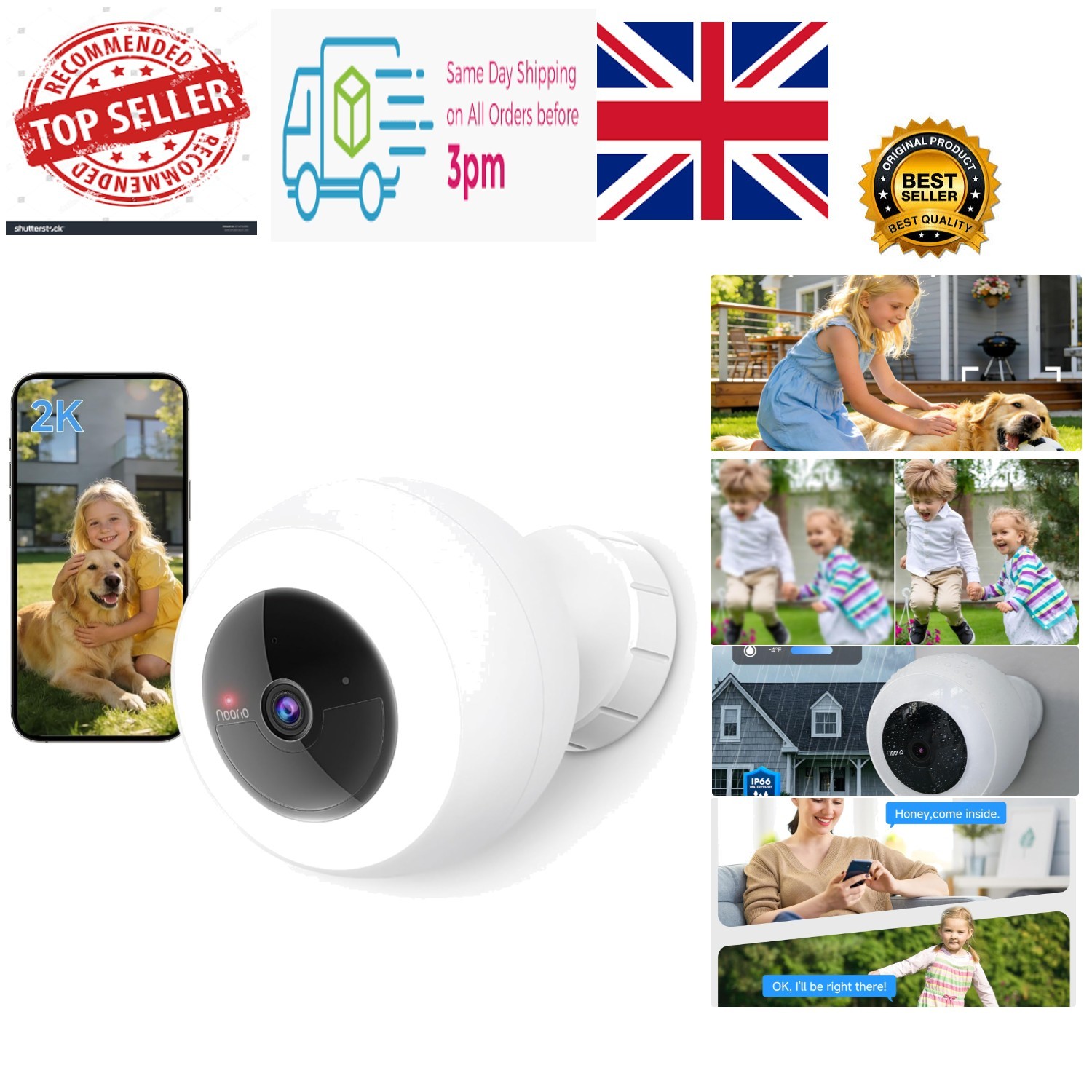 ieGeek 2K Wireless Security Camera Outdoor Colorful Night Vision, Rechargeable Battery CCTV Camera Systems, WiFi Home Security Camera