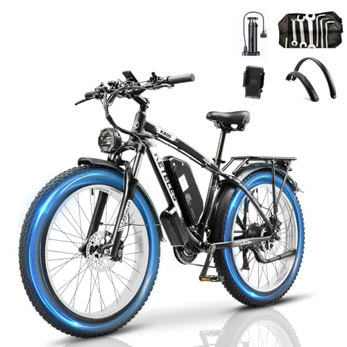 K800 26" Fat Tire Electric Bikes Travel Snow E Bike for Adults with 48V 23AH Battery 250W Motor, Phone Holder &Charger, 85NM Range 60 Mile 21 Speed Electric Commuter Bicycle for Men and Women,Blue