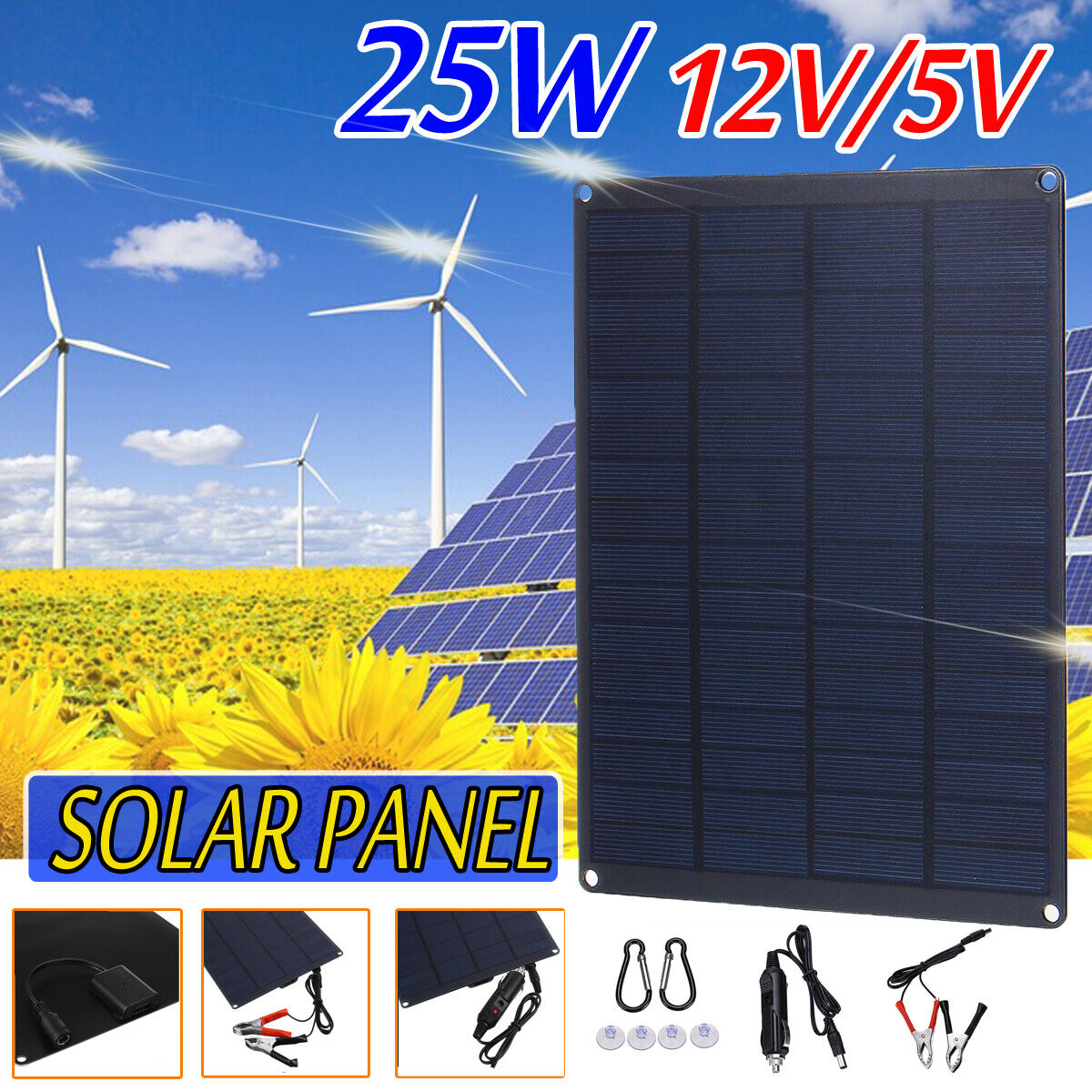 25 Watt Mono Solar Panel Kit 18V USB battery Charger For Phone Outdoor Camping
