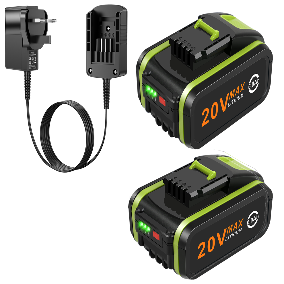 2Pcs 20V 6.0Ah Lithium ion Battery for Worx WA3551.1 WA3553 WA3572 WA3570 WA3760 WA364 WX386 with Charger