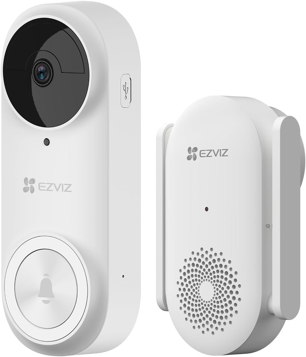 EZVIZ 2K Battery Video Doorbell Camera with Chime No Monthly 2 Piece Set, Db2