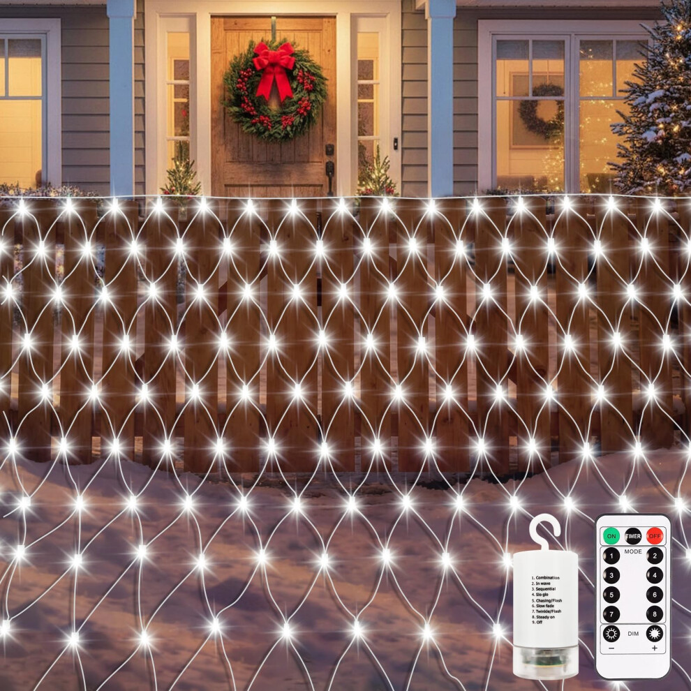 CCILAND 3M x 2M Battery Garden Net Lights, 200 LED Mesh Lights with Remote 8 Modes Fairy Lights String Outdoor Waterproof Dimmable for Backyard Bedro