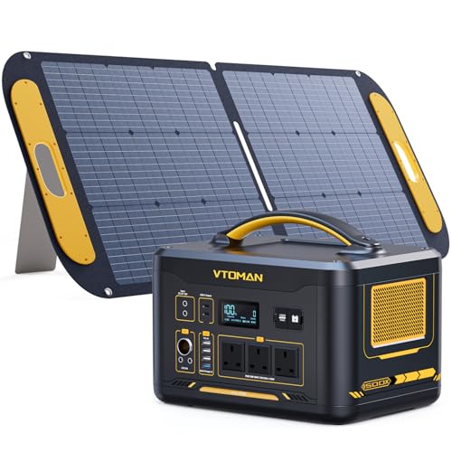 VTOMAN 1500W Portable Power Station with 200W Solar Panel - 828Wh LiFePO4 Battery Solar Generator with 1500W Constant-Power, PD 100W Type-C, Capacity Expandable to 2376Wh for Camping, Off-grid, Backup