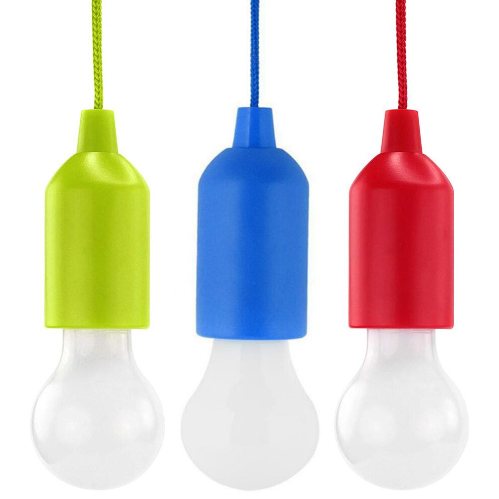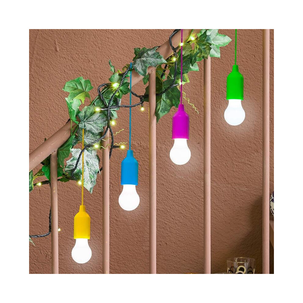 8 Pack LED Pull Cord Light Bulb, Battery Operated Colorful Hanging Lamp for Portable Night Lighting, Camping and Child Room Decor