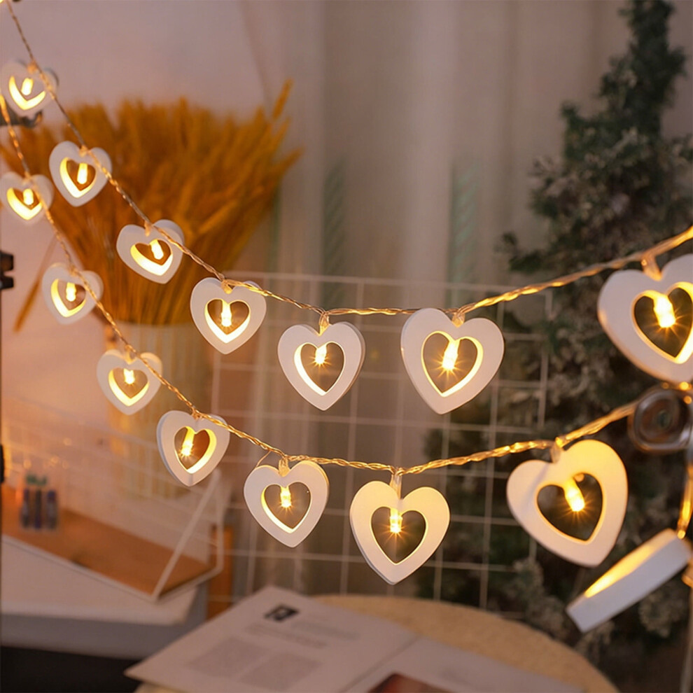 Valentine's Day Wooden Heart LED String Lights, Battery Operated Hanging Love Lamp for Bedroom, Wedding, Birthday (White)