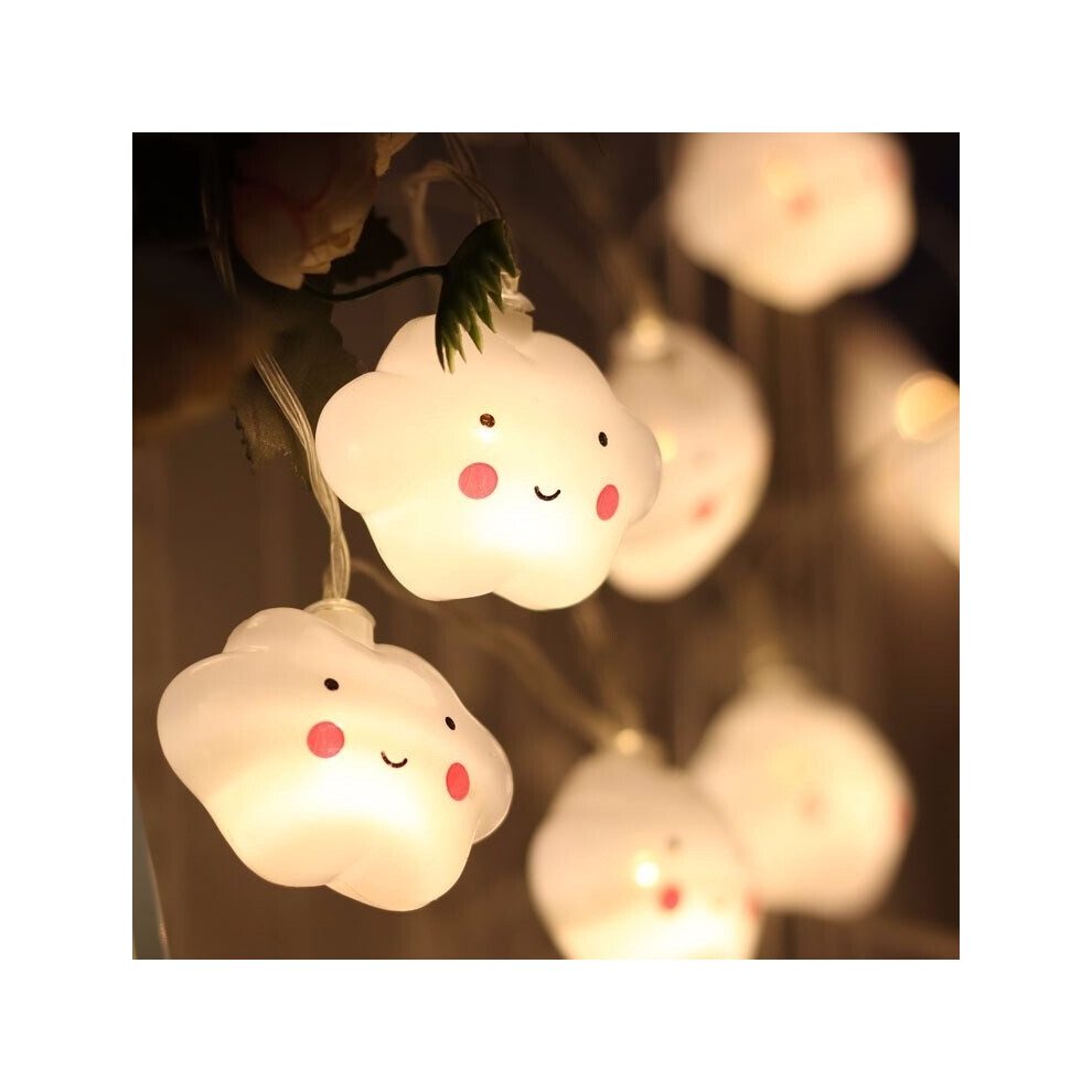 LED Creative White Cloud Smiling Cloud Light String Children's Bedroom Tent Birthday Decoration Battery Cloud Hanging Lamp - 1.5m 10 Lights