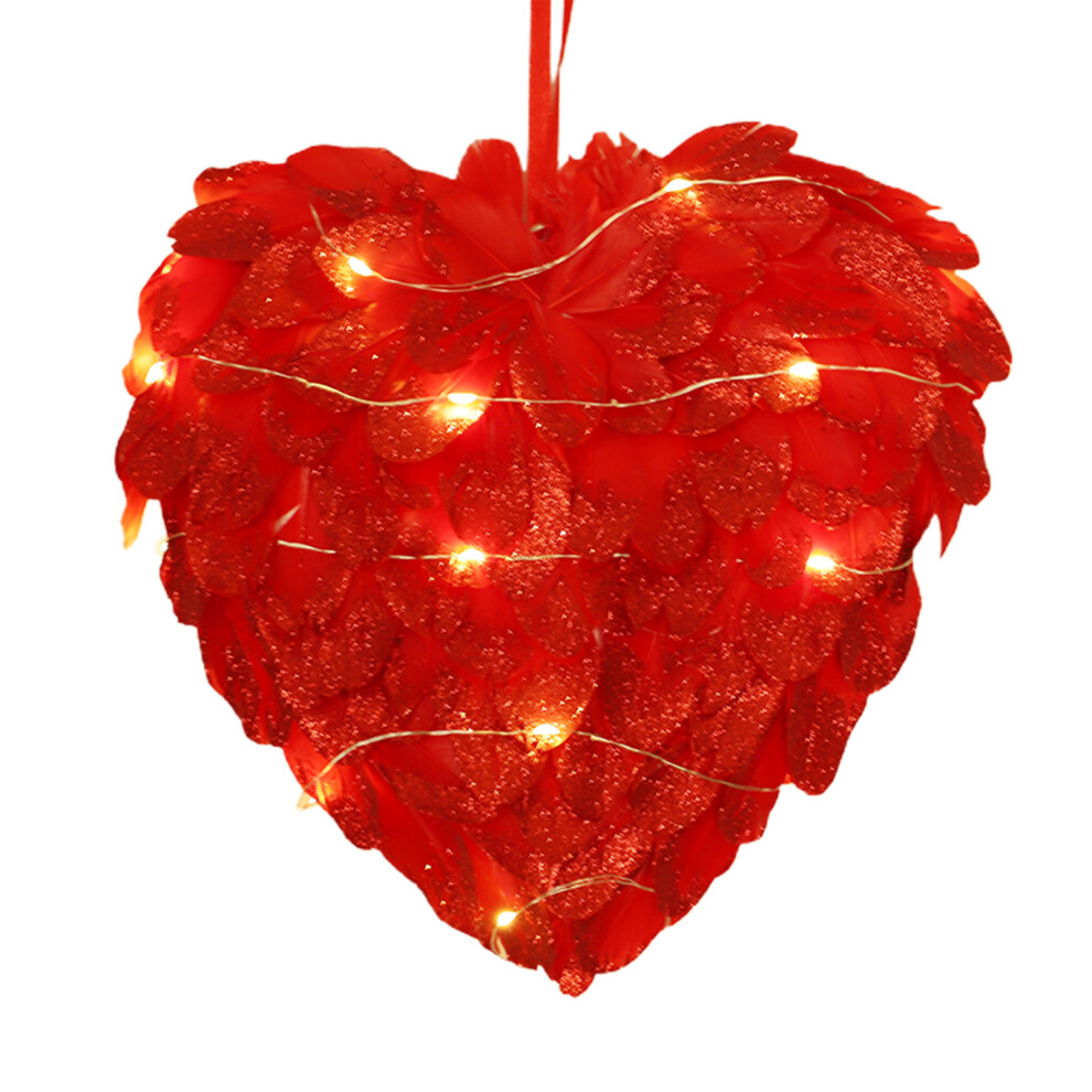Valentine's Day Heart Luminous Decor, Unique Feathered Red Fairy Lights, Battery Operated No Maintenance Required, 1 Piece for Indoors Outdoors
