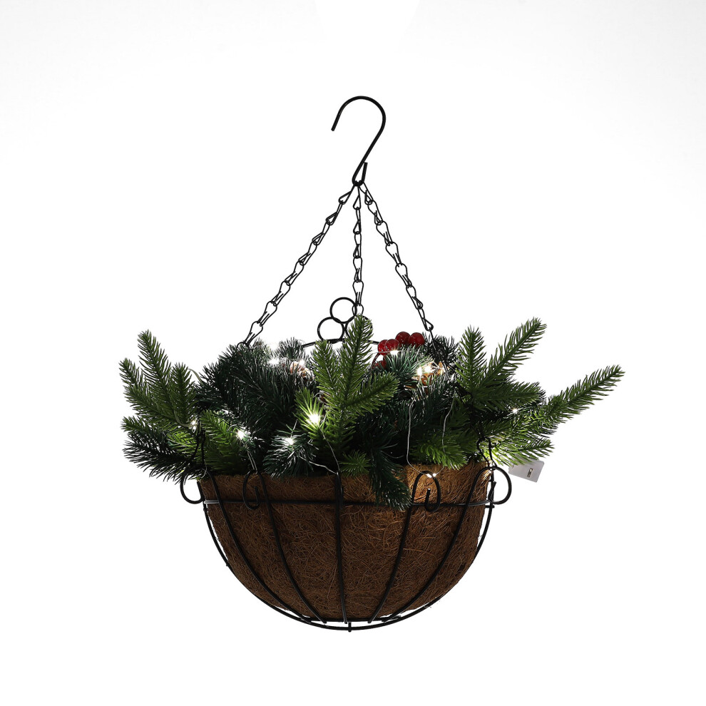 Pre-Lit Artificial Christmas Basket, Decorative Pine Cones Berries Add Charm, Battery-Operated LED Lights For Indoors Outdoors, Wedding Home Decor