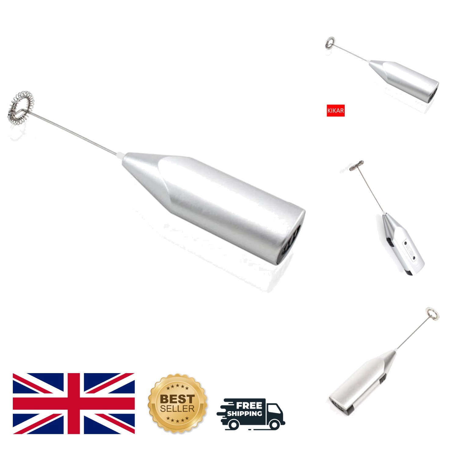 Silver Handheld Battery Operated Electric Milk Frother Maker/Mixer For Latte, Cappuccino, Frappe Drink, Hot Chocolate