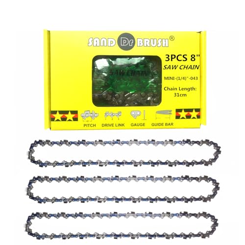 SAND DR BRUSH Mini Chainsaw Chain Replacement 4 Inch 3pcs, for 4Inch Chain Guide Bar, 0.043"(1.1mm) Gauge, 1/4" LP, 28DL, Fits All Brands Battery Electric Chainsaw Mini Handheld Rechargeable Saw Wood