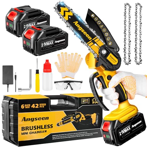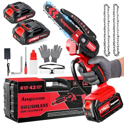 Brushless Mini Chainsaw Cordless 6 Inch, Electric Saw Battery Chainsaw Chain Saws with 2 2.0Ah Battery and 2 Super Chains, Small Chainsaw Power Tools for Cutting Trees, Cut Wood, Tree