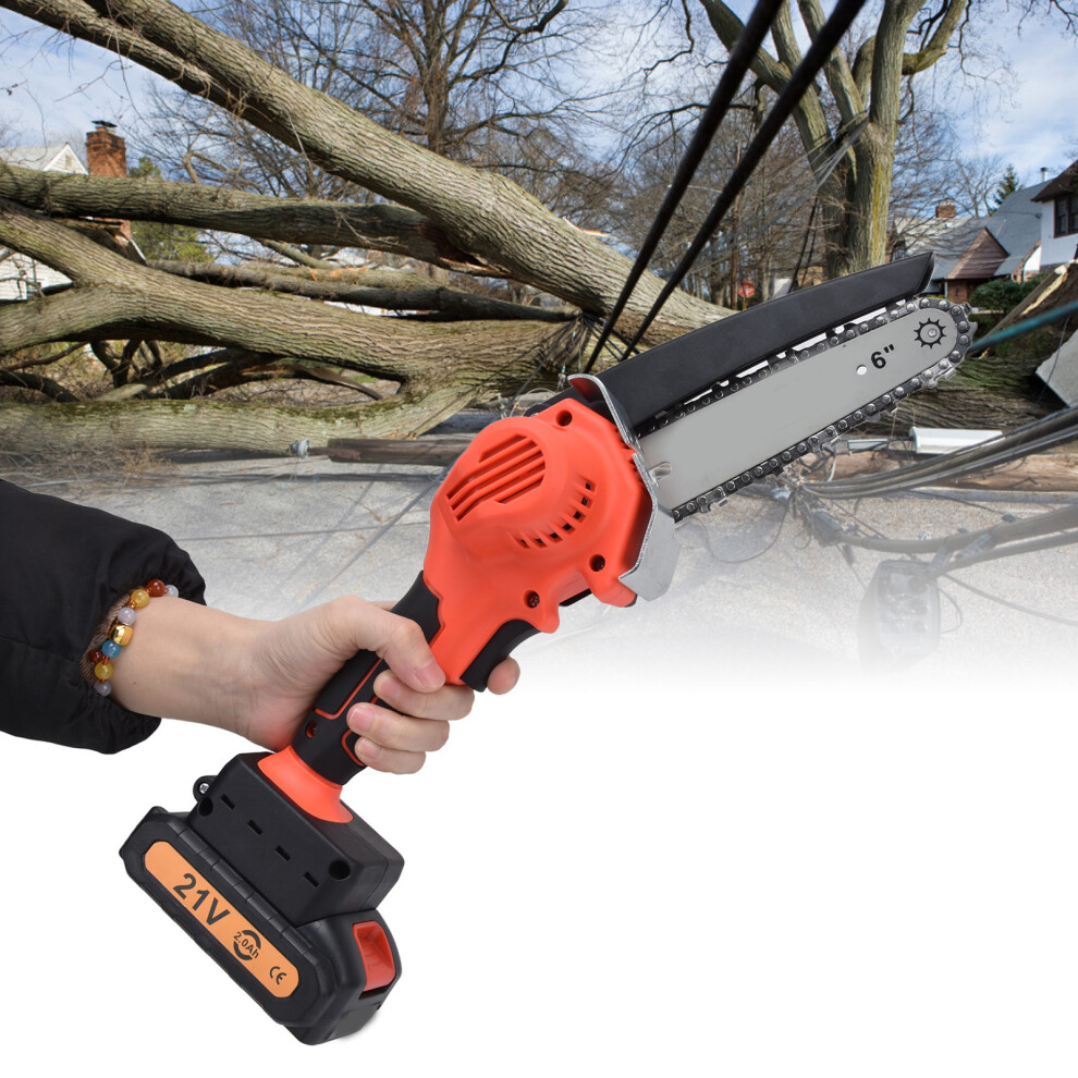 6in 21V Battery Mini Chainsaw, Portable 2000mAh, ABS & Steel