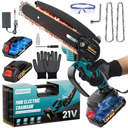 Mini Chainsaw Cordless 6 Inch 8000mAh, Electric Saw Battery Chainsaw with 2 Batteries 4000mAh and 2 Super Chains, Electric Chainsaw for Tree Branches and Garden Cutting