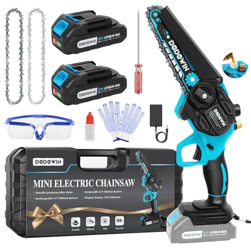 DODOWIN Mini Chainsaw 6 Inch, Electric Chainsaw Cordless with 21V 2.0Ah Battery & Charger, Lightweight Chain Saw for Garden Wood Cutting, Stocking Fillers for Men Gifts Chrismas