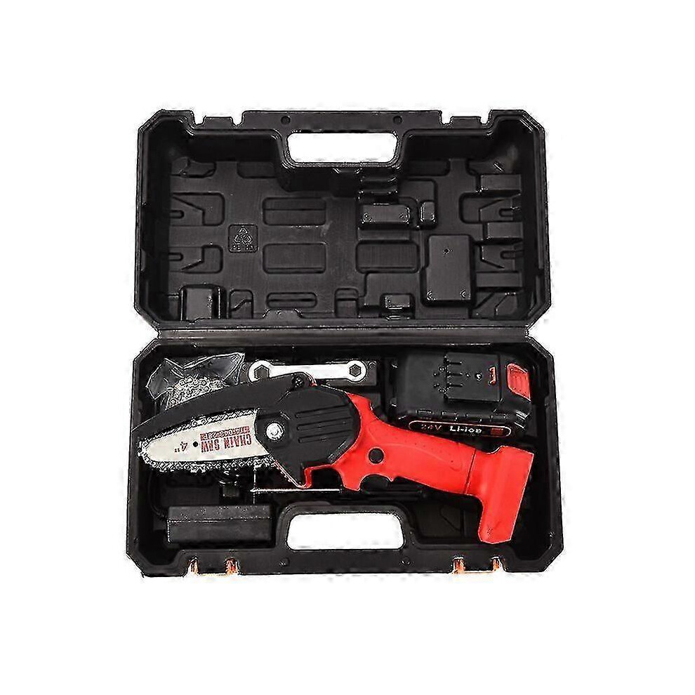 (Red, One Battery) 220V Mini Chainsaw Cordless Electric Saw Hand-held Rechargeable Electric Logging Saw With Brushless Motor
